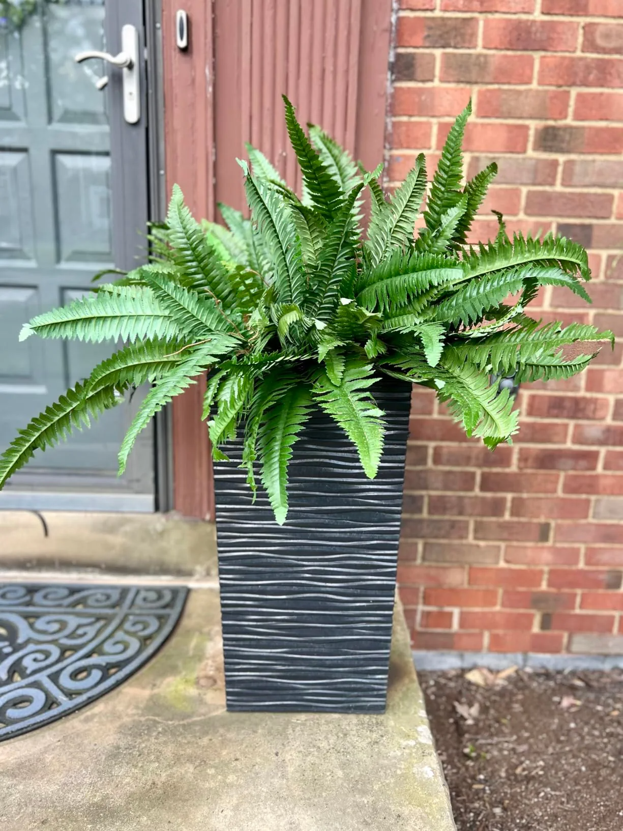 I was pleasantly surprised at how realistic they are! From the street, you absolutely can’t tell they’re fake lol! I used two plants in each urn. I had to shape them, much like an artificial Christmas tree, but it didn’t take long! We’ll see how they hold up